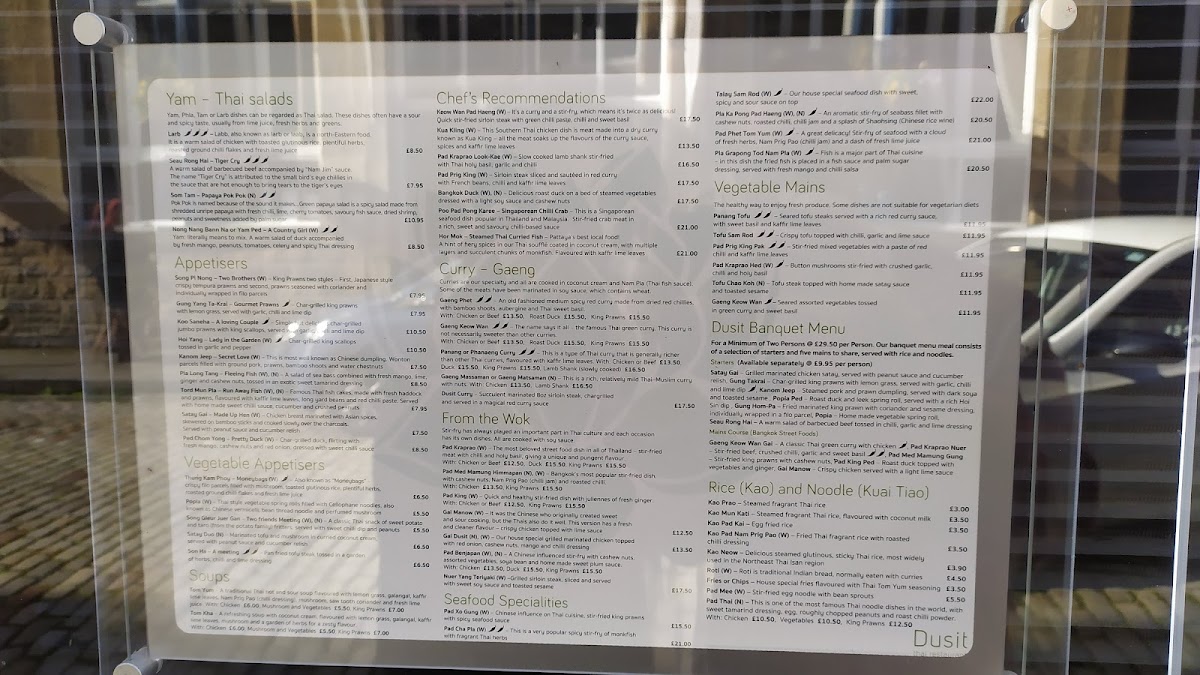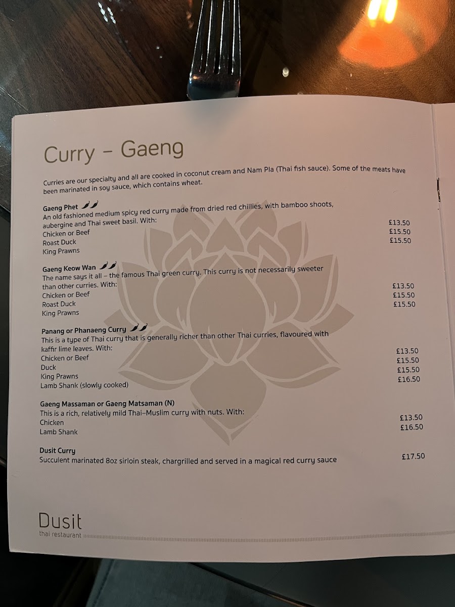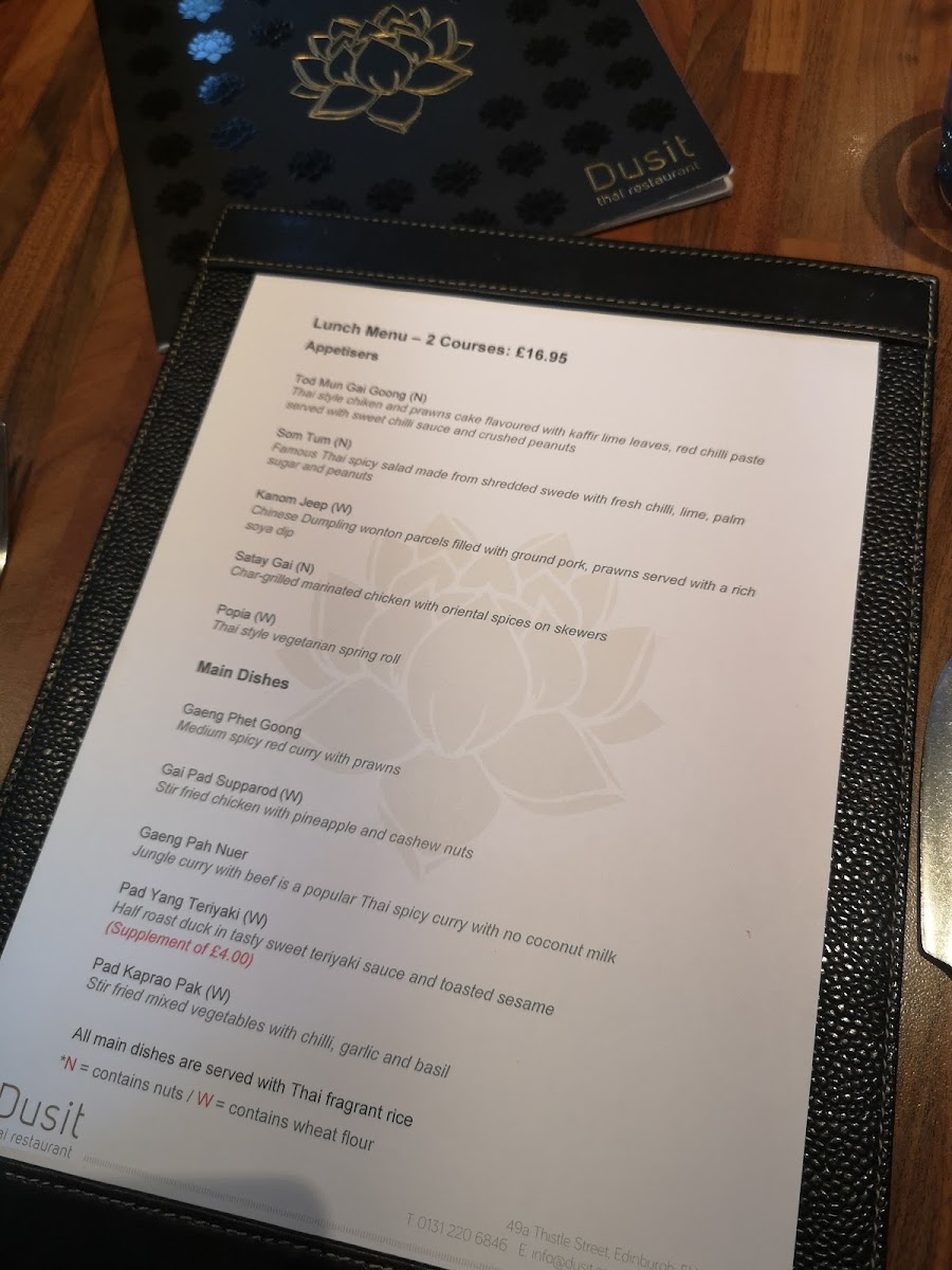 Dusit, located at 49A Thistle St, Edinburgh, offers an exceptional dining experience that blends traditional Thai flavors with modern twists. The menu at Dusit stands out for its diversity and authenticity, offering a wide selection of dishes that capture the essence of Thai cuisine. Whether you're a fan of rich curries, fresh seafood, or aromatic stir-fries, there's something for everyone at this Edinburgh hotspot.